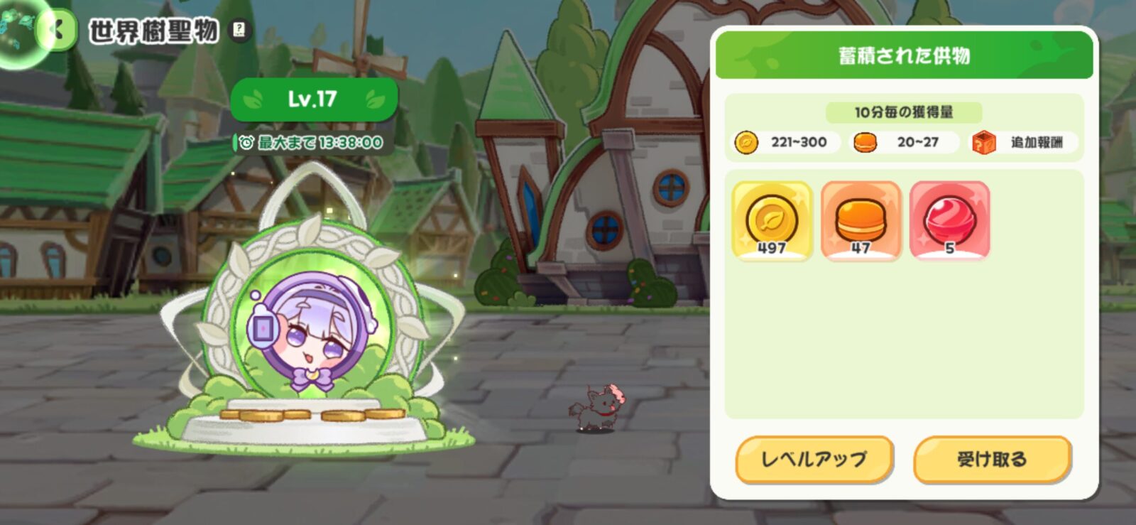 [教団]内の本部にある、世界樹聖物から供物を受け取りましょう。