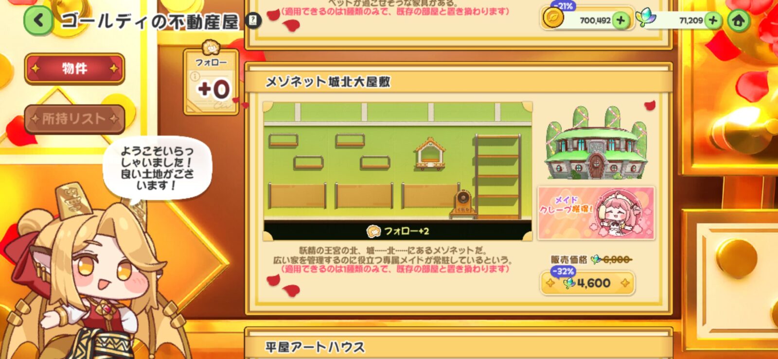 毎日の訪問が面倒な方は、ゴールディの不動産屋でメイドクレープ付きのメゾネットを買いましょう。