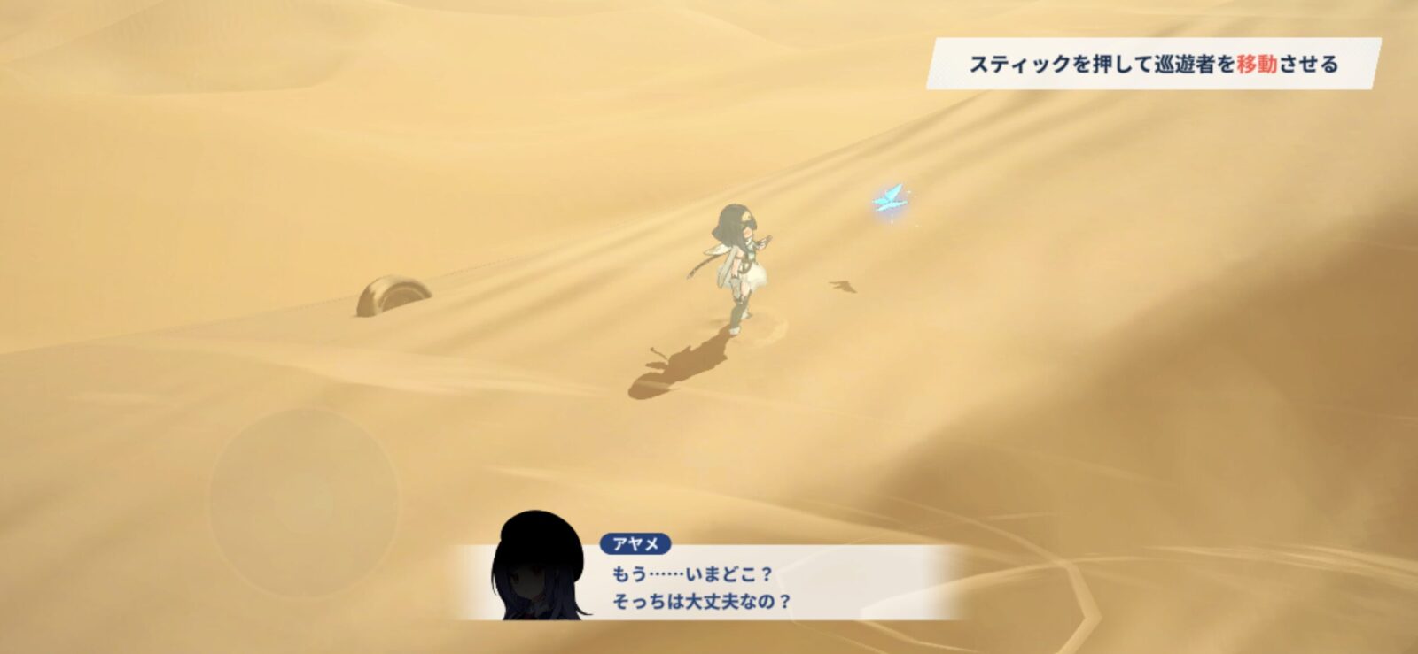 キャラを動かして、砂漠でのチュートリアルを進めます。