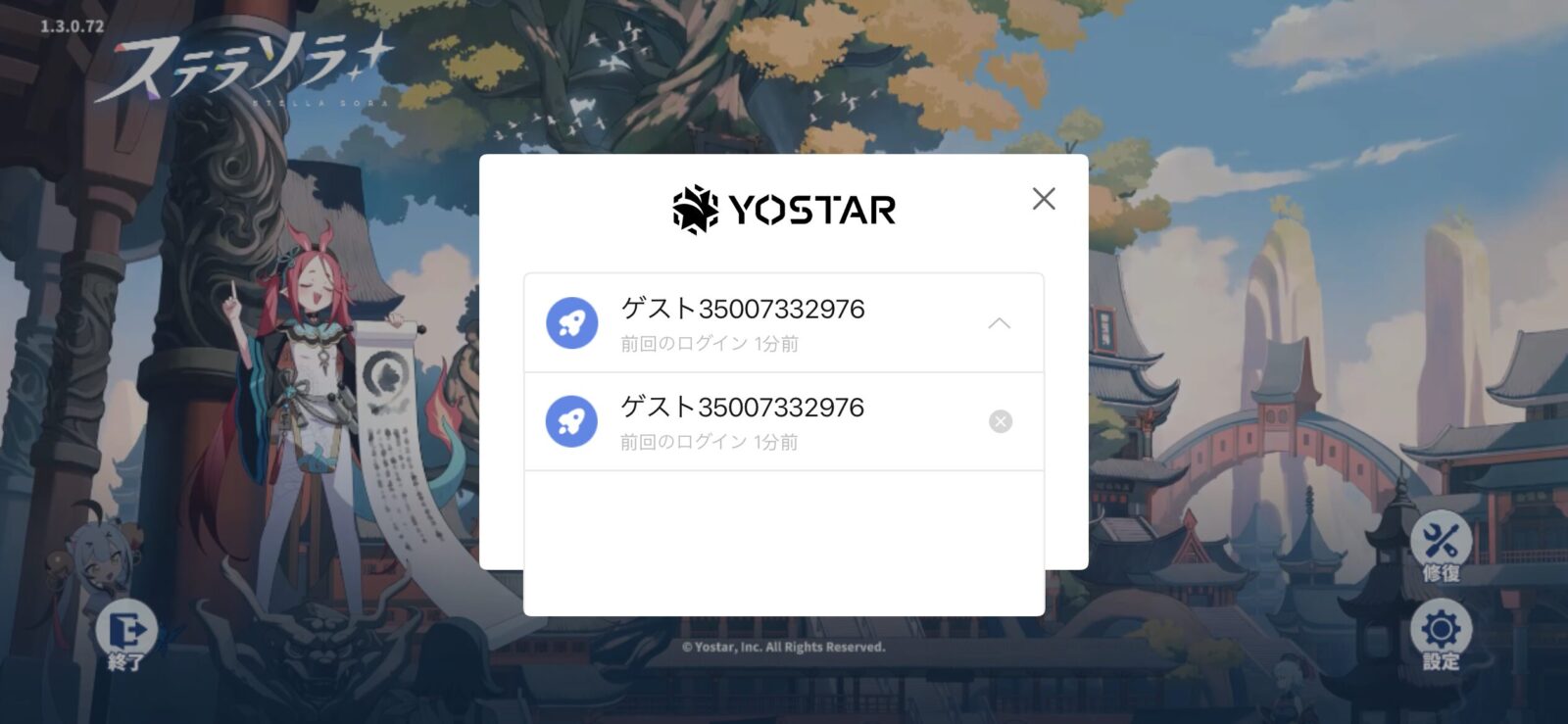 - ゲストアカウントで入り、最初からリセマラ
